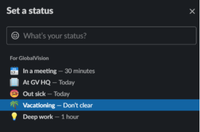 3. Update your Slack status to 🌴 VACATIONING or 🤧 OUT SICK to advise your colleagues of your absence.